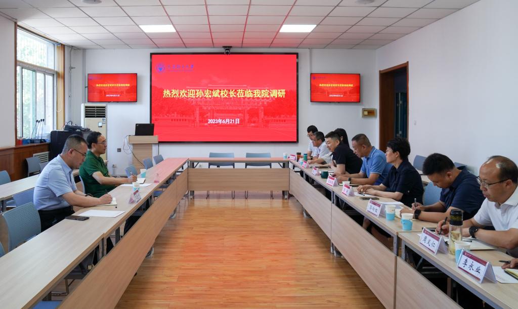 6月21日上午,校党委副书记、副校长(主持行政工作)孙宏斌一行到beat365官网调研指导工作。党委书记闫怡红、副院长(主持工作)肖娟、副书记王飞、副院长郭向红、太科院院长赵喜萍及各系主任、实验中心主任、工会主席参加了调研。