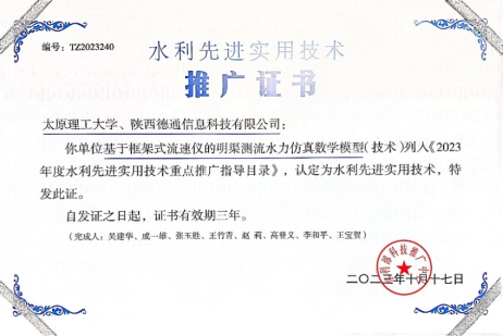 水利先进适用技术推广证书