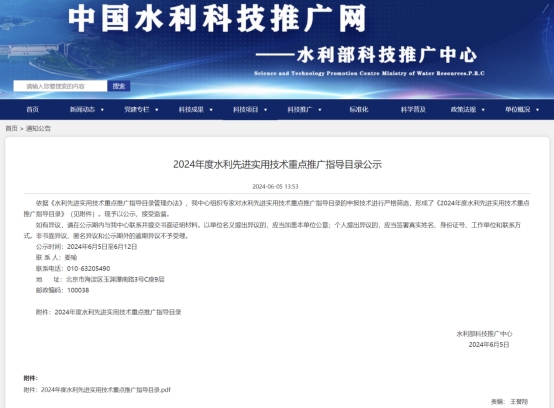 2024年6月5日,水利部科技推广中心公布了2024年度水利先进实用技术重点推广指导目录,全国共有209项技术(产品)入选。其中由beat365官网供水工程课题组牵头申报的新型技术“长距离高扬程大流量供水系统安全运行仿真平台”通过水利部专家严格筛选评审入选,并成为2024年度山西省唯一入选《水利先进实用技术重点推广指导目录》的新型技术。
