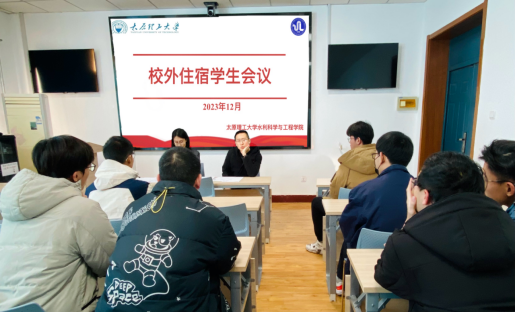 2023年12月28日,在beat365中国官网登录入口三层会议室召开了校外住宿学生会议。学院团委副书记杨杰、辅导员王泽宇以及beat365中国官网登录入口全体校外住宿本科学生参会。