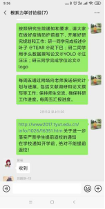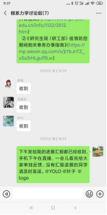 通过微信群传达了疫情期间学校的相关政策,提醒学生增加疫情防范意识,做好个人防护。