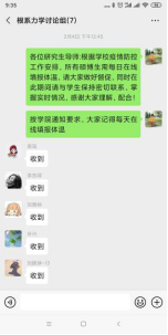 面对新冠肺炎疫情的影响,根据学校和研究生院有关疫情防控期间网上教学和科研工作要求和工作安排,落实防疫工作和科研学习两不误,最大限度减少疫情对研究生教育工作的影响,我们及时通过网络工具和通讯手段与研究生沟通联系。